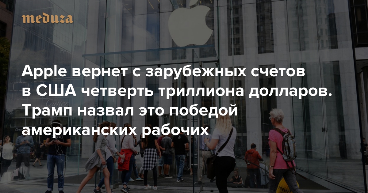 Apple вернет с зарубежных счетов в США четверть триллиона долларов. Трамп назвал это победой американских рабочих