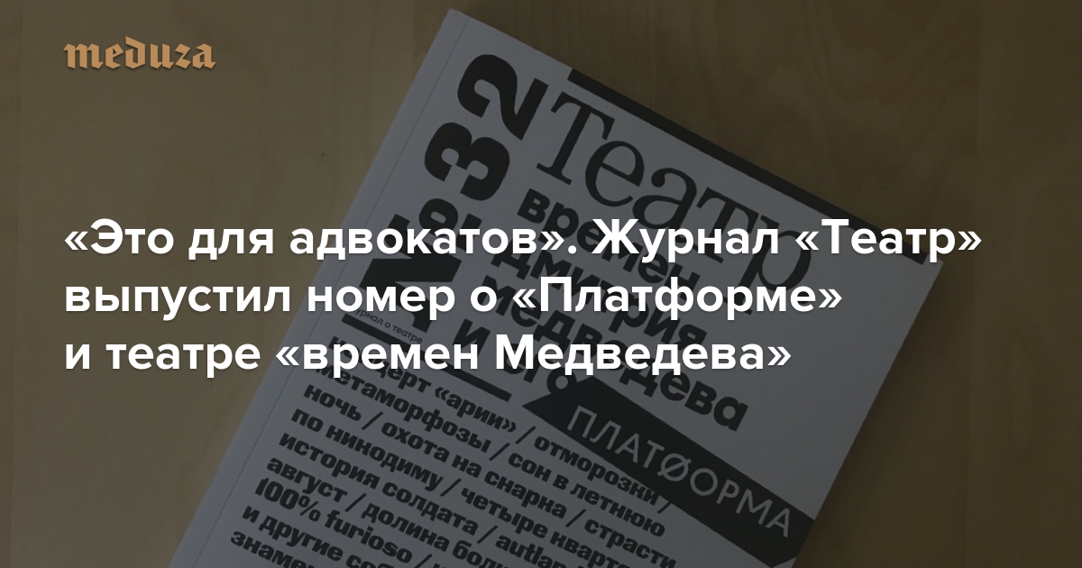 «Это для адвокатов» Журнал «Театр» выпустил номер о «Платформе» и русском театре «времен Медведева»