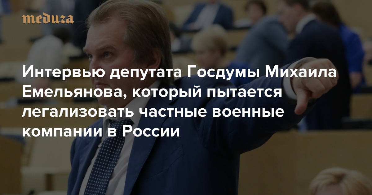 «Тот, кто едет на войну идейно, заслуживает уважения» Интервью депутата Госдумы Михаила Емельянова, который пытается легализовать частные военные компании в России