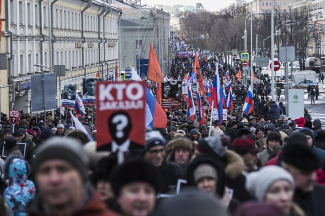 25 февраля в четвертый раз прошел согласованный с московскими властями марш в память об оппозиционном политике Борисе Немцове, который был убит 27 февраля 2015 года на Москворецком мосту. В этом году, по подсчетам «Белого счетчика», в шествии через центр Москвы приняли участие 7,6 тысячи человек — это меньше, чем во все предыдущие годы. За маршем наблюдала корреспондент «Медузы» Ирина Кравцова.