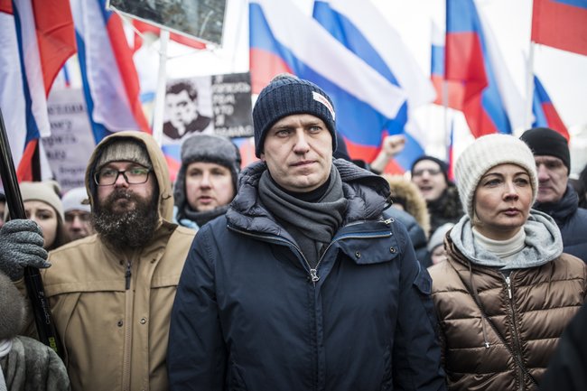 — Свободу Олегу Навальному! — доносится мужской голос из толпы.