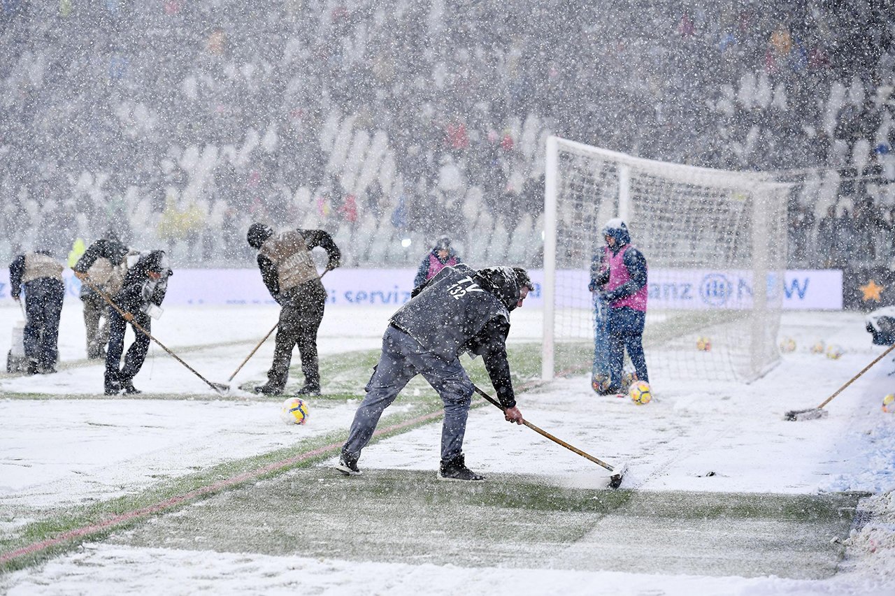 Футболисты перед матчем «Ювентус» — «Аталанта», который отменили из-за снегопада