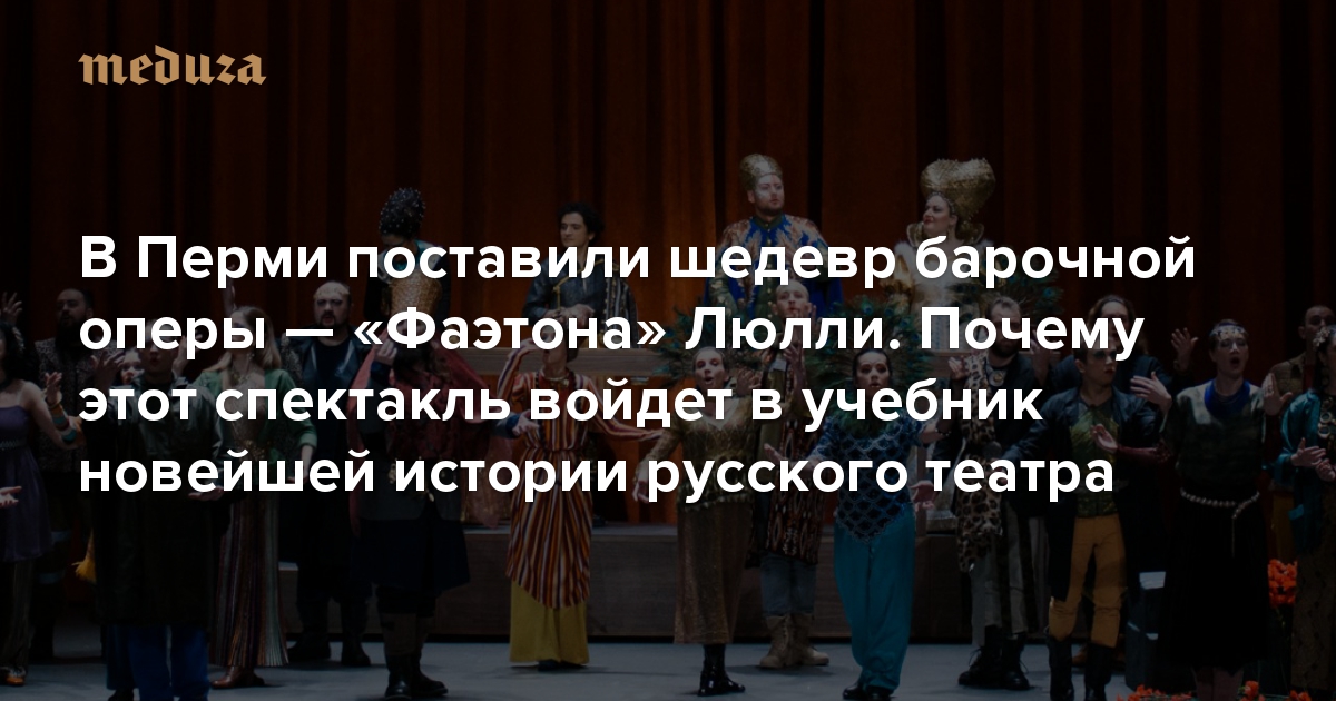 Пермский театр оперы и балета показал в середине марта премьеру музыкальной трагедии «Фаэтон» Жана-Батиста Люлли. Это первая в России постановка шедевра французского барокко, которую подопечные Теодора Курентзиса осуществили вместе с Королевской оперой Версаля. Во Франции этот спектакль покажут в начале лета. По просьбе «Медузы» музыкальный критик Дмитрий Ренанский рассказывает, почему «Фаэтон» стал одним из ключевых событий российской оперной сцены последних лет.