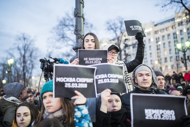 Вечером 27 марта в центре Москвы прошли две акции в память о погибших во время пожара в кемеровском торговом центре. Одно, на Пушкинской площади, еще накануне начали готовить в фейсбуке, другое, на Манежной — решили в срочном порядке провести московские власти. Несмотря на то что акции были организованы по-разному, корреспондент «Медузы» Евгений Берг и у стен Кремля, и на традиционном месте оппозиционных митингов увидел искренне скорбящих москвичей.