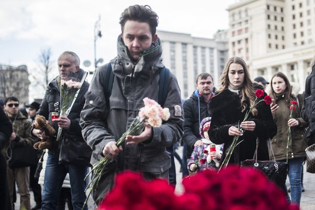 Туристы из Азии не слишком хорошо понимали, зачем им дали гвоздики. Они стояли с цветами посреди Манежной площади, беспомощно озираясь. Вокруг с такими же гвоздиками ходили несколько сотен людей. В 17:00 вечера 27 марта в центре Москвы городские власти организовали акцию памяти погибших в пожаре в кемеровском торговом центре «Зимняя вишня».