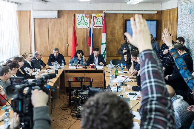 «У нас сложилась очень непростая, а точнее говоря, сложная ситуация. Моя задача — собрать все факты и принять решение так, чтобы не было запаха», — открыл заседание новый исполняющий обязанности главы района Андрей Вихарев. Его предшественника Евгения Гаврилова накануне уволили — после того, как 21 марта он получил по лицу от жителей Волоколамска; потасовка случилась возле больницы, где проходила стихийная акция из-за госпитализации нескольких детей, отравившихся «неизвестным газом». Следом за Вихаревым выступил Александр Чупраков, заместитель губернатора Московской области Андрея Воробьева, и заверил собравшихся, что ситуация уже меняется: на полигон приезжает не больше 80 машин в день (до того их было минимум вдвое больше), их снимают на камеру и ведут учет данных. А главное — акционеры уже заключили договор с нидерландской компанией Multriwell на рекультивацию и дегазацию полигона (их российскими партнерами обычно выступает компания «Промбиогаз», одним из совладельцев которого является троюродный брат президента Александр Путин).
