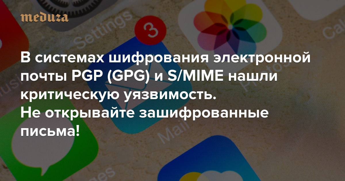 В системах шифрования электронной почты PGP (GPG) и S/MIME нашли критическую уязвимость. 🙅♂️ 🔐 📧 Не открывайте зашифрованные письма!