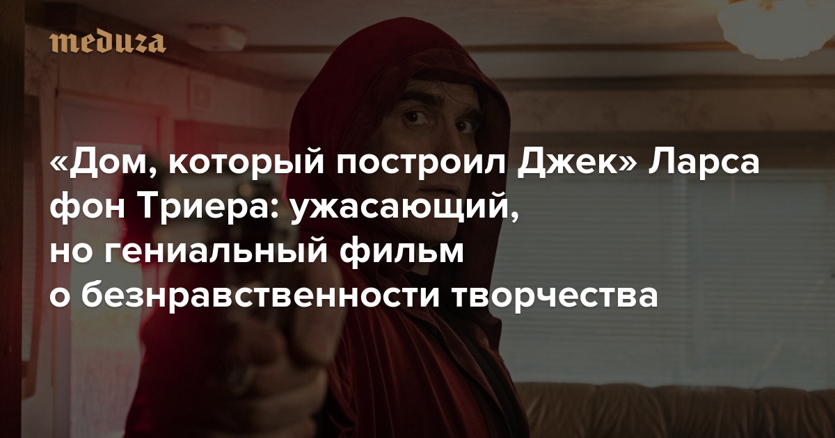 Думаете, только россияне — эксперты в области оскорбления чувств? Отнюдь. Триер мог бы немало рассказать об этом. И о том, как его изгнали с родного для него Каннского фестиваля за глупую шутку о Гитлере, за которую он тут же извинился. И о том, как прилюдно стыдили за чудовищные, по мнению рецензентов, картины. И о том, что фильм о маньяке, расчленяющем женщин одну за другой, рассказанный от лица серийного убийцы, в осененном феминизмом 2018 году всерьез воспринимают как оскорбление. «Годами я снимал фильмы о добрых женщинах; настало время сделать кино о злом мужчине», — констатирует автор.