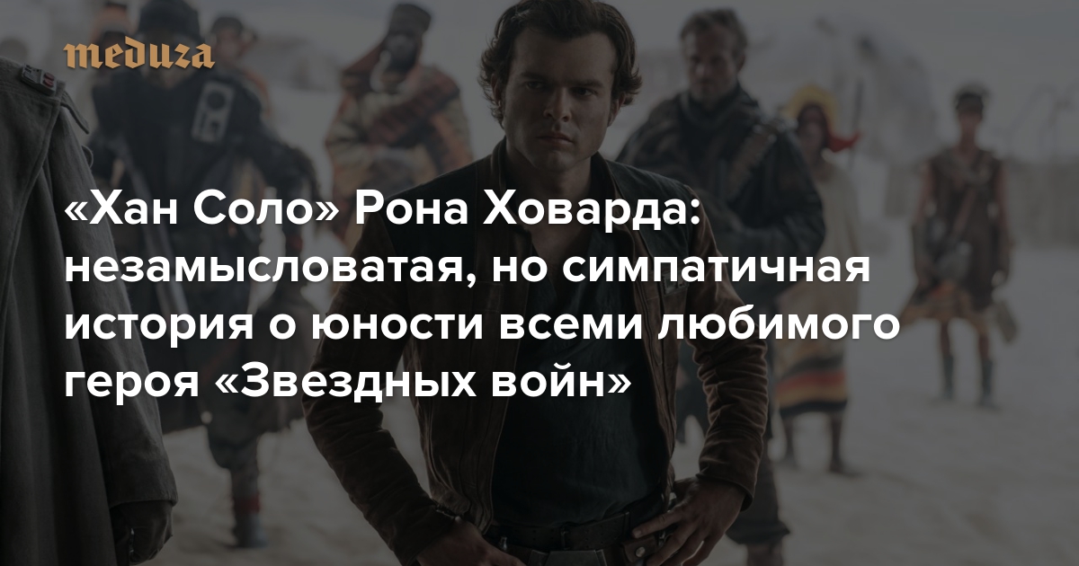 24 мая в российский прокат выходит фильм «Хан Соло. Звездные Войны. Истории» — полнометражный спин-офф одноименной киносаги. Речь в фильме идет о приключениях молодого Хана Соло до встречи с Люком Сайуокером на планете Татуин. Кинокритик «Медузы» Антон Долин считает, что режиссер Рон Ховард не приложил никаких усилий, чтобы его картина выделялась на фоне остальных фильмов из серии «Звездных войн», но, тем не менее, смог вполне удачно встроить ее в основанную Джорджем Лукасом киновселенную.
