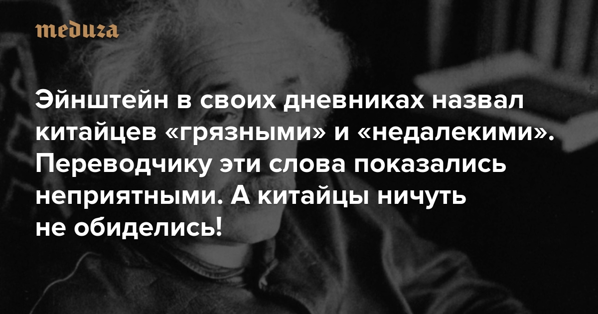 Эйнштейн в своих дневниках назвал китайцев «грязными» и «недалекими». Переводчику эти слова показались неприятными. А китайцы ничуть не обиделись!