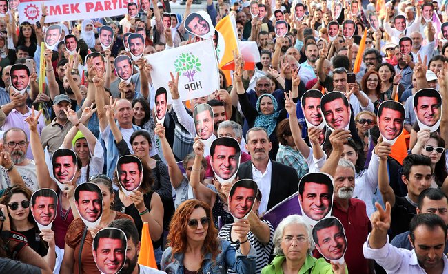 Ключевой оппонент турецкого президента, сопредседатель Демократической партии народов Селахаттин Демирташ, находится в тюрьме. В 2014 году он баллотировался на президентских выборах против Эрдогана и довольно неплохо выступил, заняв третье место. Его тогда называли турецким Обамой. [В ноябре 2016 года] его посадили за связи с Рабочей партией Курдистана, сейчас он ожидает суда и руководит предвыборной кампанией из тюрьмы. До официальных каналов Демитраша не допускают, но он умудрился организовать крупный митинг в курдских районах через интернет. Вместо него перед собравшимися выступала его жена.