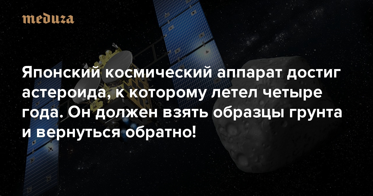 Японская межпланетная станция «Хаябуса-2», запущенная в 2014 году, достигла своей цели. В ночь на среду, 27 июня, аппарат вплотную приблизился к астероиду Рюгу, чья орбита пересекает орбиты Земли и Марса. «Хаябуса-2» будет изучать астероид полтора года, после чего возьмет образцы грунта и отправится обратно на Землю.