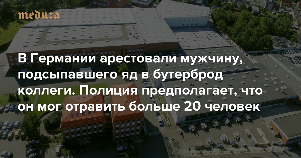 В Германии арестовали рабочего, подсыпавшего яд в бутерброд коллеги. Полиция предполагает, что он мог отравить больше 20 человек