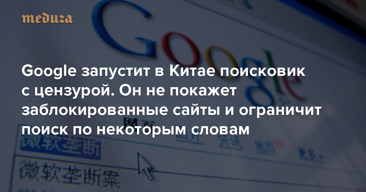 Google запустит в Китае поисковик с цензурой. Он не покажет заблокированные сайты и ограничит поиск по некоторым словам