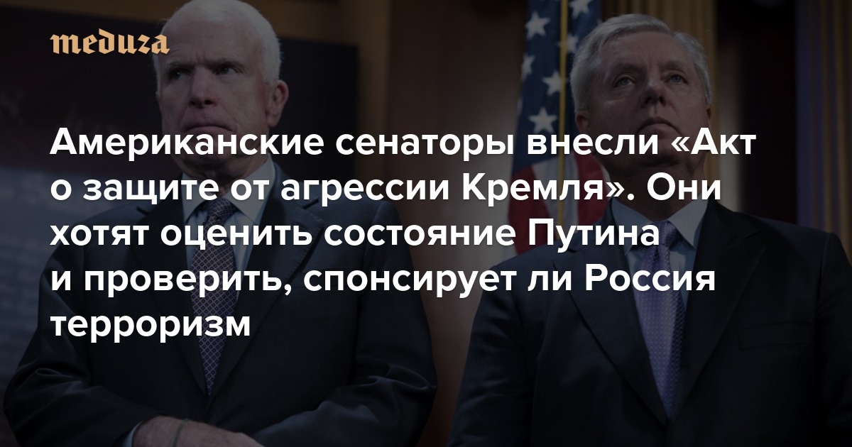 Американские сенаторы внесли законопроект «О защите от агрессии Кремля». Они хотят оценить состояние Путина и проверить, спонсирует ли Россия терроризм