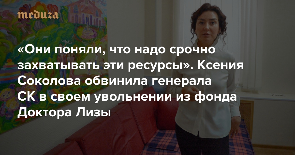 «Они поняли, что надо срочно захватывать эти ресурсы». Ксения Соколова обвинила генерала СК в своем увольнении из фонда Доктора Лизы