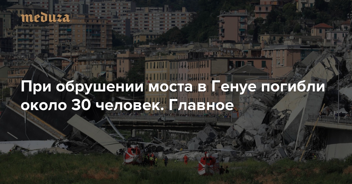 При обрушении моста в Генуе погибли около 30 человек. Главное