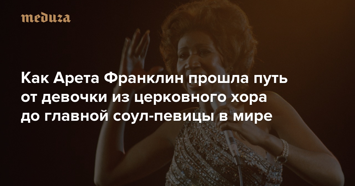 16 августа в своем доме в Детройте умерла Арета Франклин — американская певица и музыкант. Пик славы ритм-н-блюз- и соул-исполнительницы пришелся на конец 1960-х — начало 1970-х, но до конца жизни Франклин оставалась для американских поклонников (в числе которых и бывший президент США Барак Обама) королевой соула. В 2008 году журнал Rolling Stone объявил ее величайшей певицей в истории. По просьбе «Медузы» журналист Лев Ганкин рассказывает, как Арета Франклин добилась этого звания — и почему она заслуживала его как никто другой.
