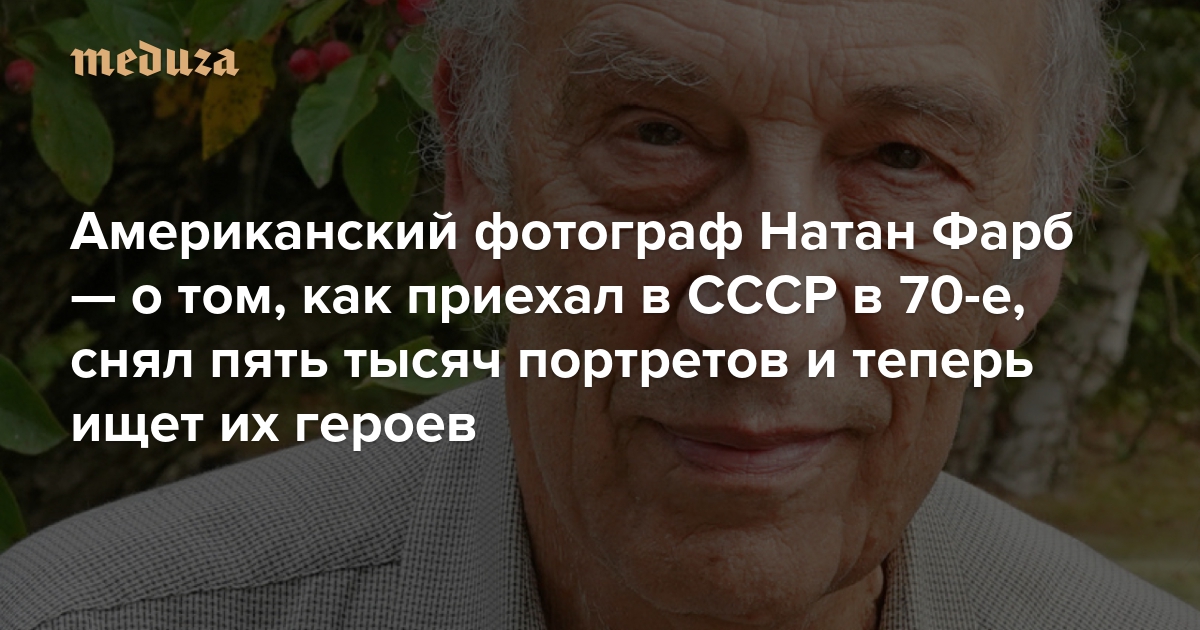 29 августа режиссер Анатолий Скачков выложил у себя в фейсбуке 200 черно-белых портретов. Все они были сделаны американским фотографом Натаном Фарбом в 1977 году — во время выставки «Фотография в США» в Новосибирске. Тогда Фарбу удалось сфотографировать почти пять тысяч человек, а затем вывезти негативы снимков из СССР; часть из них вошла в его альбом «The Russians» («Русские»). Теперь, спустя 40 лет, Натан Фарб и команда документалистов — Анатолий Скачков, Питер Риппл и писатель Андрей Филимонов — решили вернуться в Новосибирск, найти героев проекта и заново их сфотографировать. Специально для «Медузы» журналистка Лера Швец поговорила с Натаном Фарбом о «Русских», сходствах и различиях США и СССР 70-х, и об ожиданиях от поездки в Россию 2010-х.