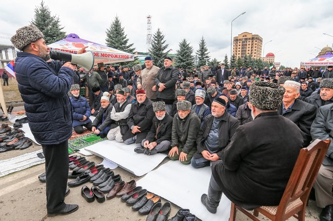 В Магасе продолжается акция против договора о границе Ингушетии с Чечней. Фотографии