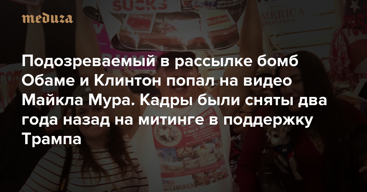 Подозреваемый в рассылке бомб Обаме и Клинтон попал на видео Майкла Мура. Кадры были сняты два года назад на митинге в поддержку Трампа