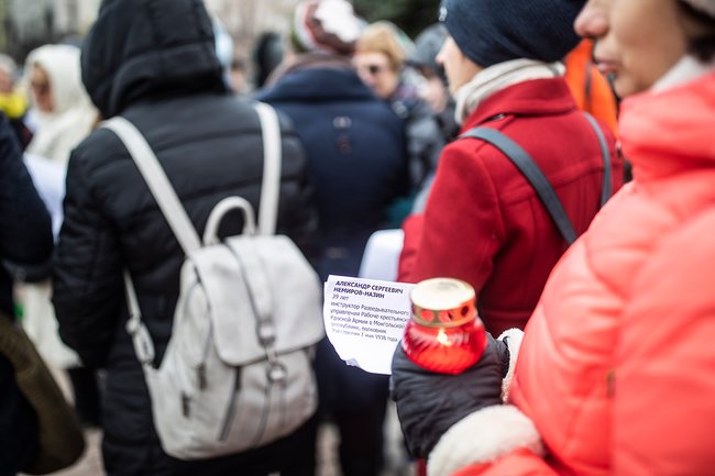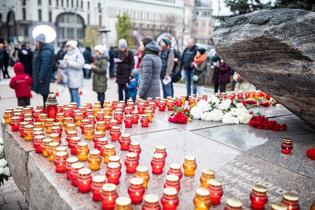 29 октября в Москве у Соловецкого камня на Лубянке проходит ежегодная акция «Возвращение имен». Весь день люди вспоминают и зачитывают имена репрессированных в годы Большого террора.