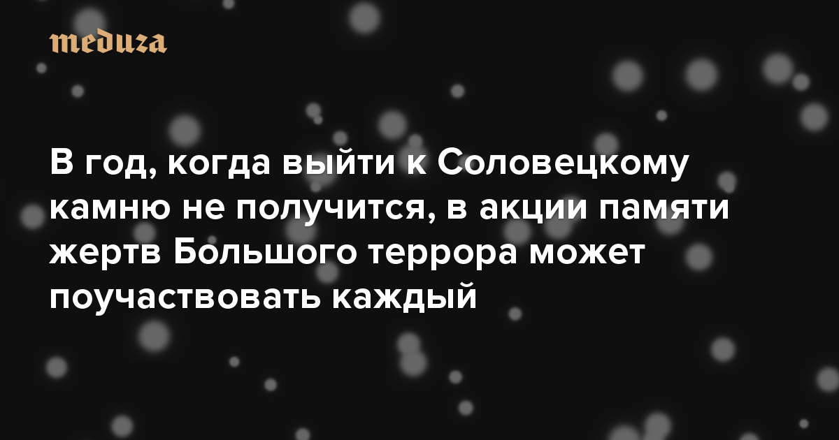 Каждый год 29 октября тысячи людей приходят к Соловецкому камню в Москве, чтобы поучаствовать в акции «Возвращение имен», посвященной жертвам политических репрессий. В 2020 году из-за пандемии «Мемориал» организовал онлайн-версию акции: для участия в ней нужно записать небольшое видео. Если вы не планируете записывать ролик, но хотите почтить память жертв сталинского террора, сразу переходите к последнему пункту.