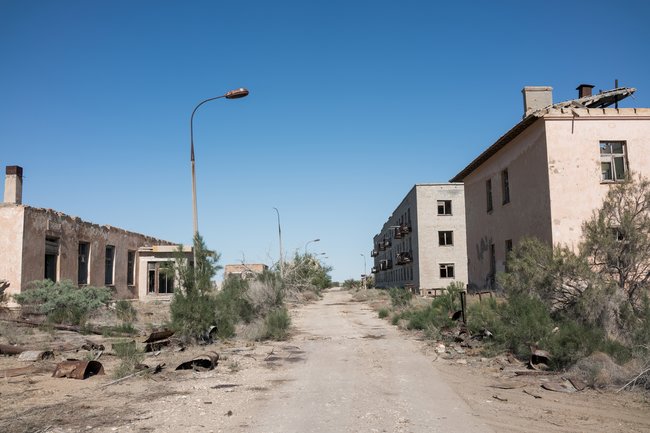 До 1940-х годов на острове Возрождения в Аральском море был только небольшой завод по переработке рыбы, а потом власти СССР решили открыть здесь военную часть и комплекс «Бархан», где разрабатывали бактериологическое оружие. Вскоре здесь был построен закрытый город — Аральск-7. В 1960-е — 1980-е годы здесь жило до полутора тысяч человек. Большинство работало в лабораториях — специалисты испытывали вирусы и бактерии на животных. В 1992 году российские власти решили перенести весь комплекс в Россию — в Киров. С тех пор в городе никто не жил, и он продолжает разрушаться. Аральское море мелеет из-за постоянного забора воды из впадающих в него рек — для орошения. Так что теперь остров Возрождения стал полуостровом, частью территории Узбекистана.