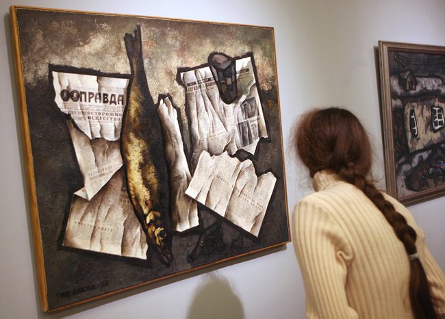 Оскар Рабин был одним из основателей Лианозовской группы — неофициального художественного объединения, названного так в честь подмосковного поселка, где жил художник. Он писал в мрачной экспрессивной манере; в его пейзажах и натюрмортах повторяются одни и те же образы и символы советской эпохи: бараки, паспорта, газеты, монеты, водка и селедка. В СССР он почти не выставлялся: официальная пресса критиковала его работы за то, что они отражают «частные, уродливые, давно отжившие явления». Персональные выставки Рабина с 1970-х проходили по всей Европе; после перестройки их начали проводить и в России — в частности, в Третьяковской галерее и ГМИИ имени Пушкина.