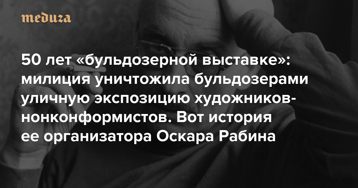 Этот текст был впервые опубликован в «Медузе» 8 ноября 2018 года под заголовком «Фантастически смелый человек. Умер Оскар Рабин, советский художник-нонконформист и организатор „бульдозерной выставки“».
