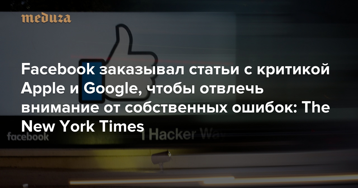 Facebook заказывал публикации о недостатках других гигантов IT-индустрии, чтобы отвлечь внимание от собственных ошибок — касающихся, например, кампании российских троллей и сотрудничества с Cambridge Analytica. Об этом говорится в расследовании The New York Times.