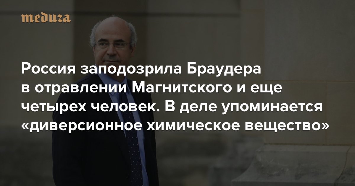 Россия заподозрила Браудера в отравлении Магнитского и еще четырех человек. В деле упоминается «диверсионное химическое вещество»