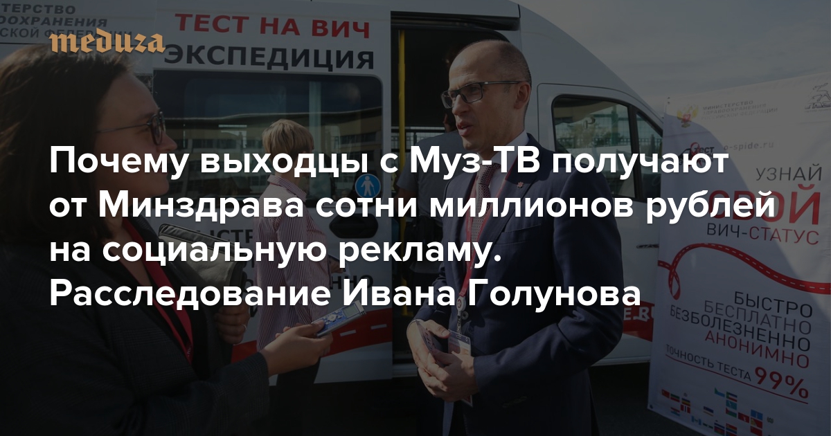 «Сдал тест на ВИЧ, и у тебя все будет хорошо» Почему выходцы с Муз-ТВ получают от Минздрава сотни миллионов рублей на социальную рекламу. Расследование Ивана Голунова