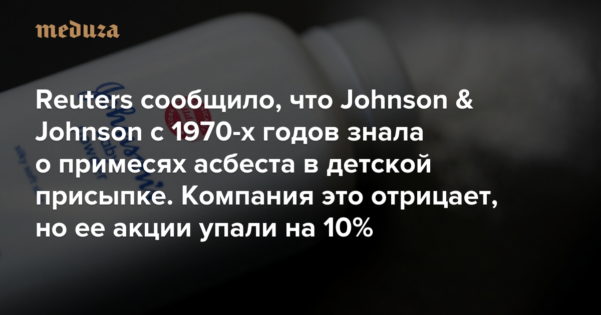 Reuters сообщило, что Johnson & Johnson с 1970-х годов знала о примесях асбеста в детской присыпке. Компания это отрицает, но ее акции упали на 10%
