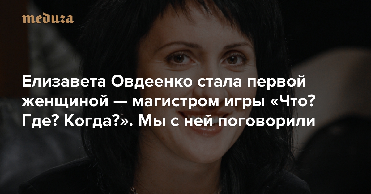 В телевизионной игре «Что? Где? Когда?» первый раз за десять лет вручен титул магистра элитарного клуба. Впервые в истории программы его получила женщина — уроженка Одессы Елизавета Овдеенко, которая играет с 2006 года. Она стала пятым магистром игры — до нее это звание получали Александр Друзь, Максим Поташев, Виктор Сиднев и Андрей Козлов. «Медуза» поговорила с Овдеенко о том, как она заслужила это звание, о разнице между спортивным и телевизионным «Что? Где? Когда?» и об отношениях с украинскими родственниками.