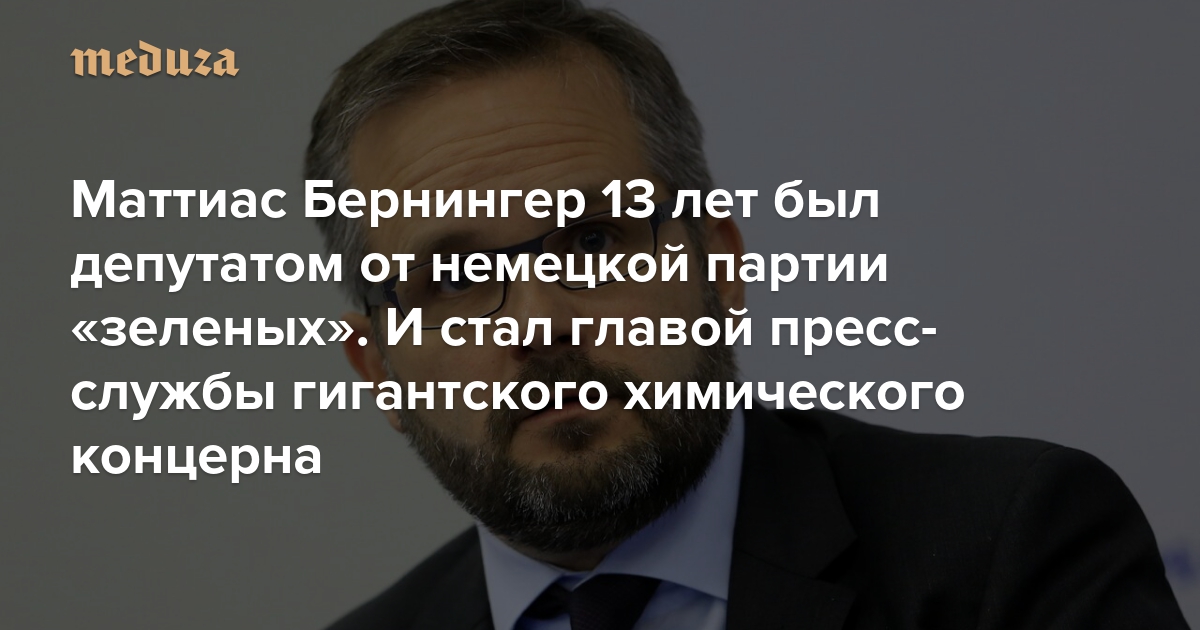 Маттиас Бернингер 13 лет был депутатом от немецкой партии «зеленых». И стал главой пресс-службы гигантского химического концерна