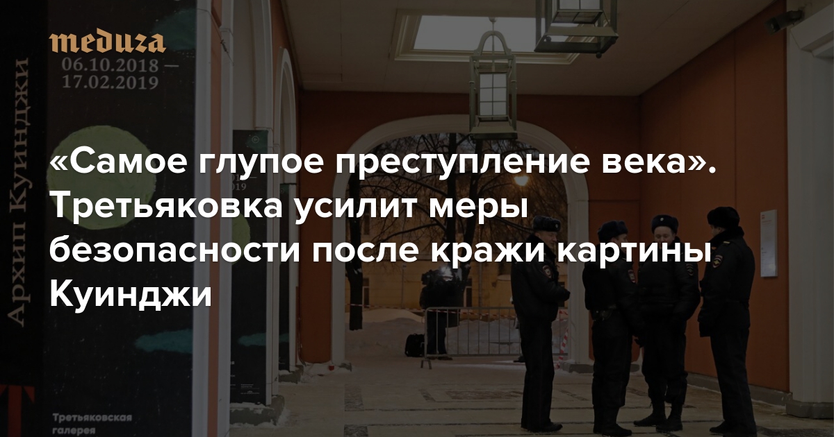 После кражи картины Куинджи Третьяковская галерея усилит меры безопасности. В ближайшее время все картины музея на временных выставках будут снабжены электронными датчиками безопасности, заявили в Министерстве культуры. Гендиректор галереи Зельфира Трегулова также назвала «вполне возможным» введение досмотра посетителей на выходе. В ближайшие три месяца галерея также будет оснащена рентгеновским оборудованием, чтобы «избежать проникновения людей с опасными предметами».