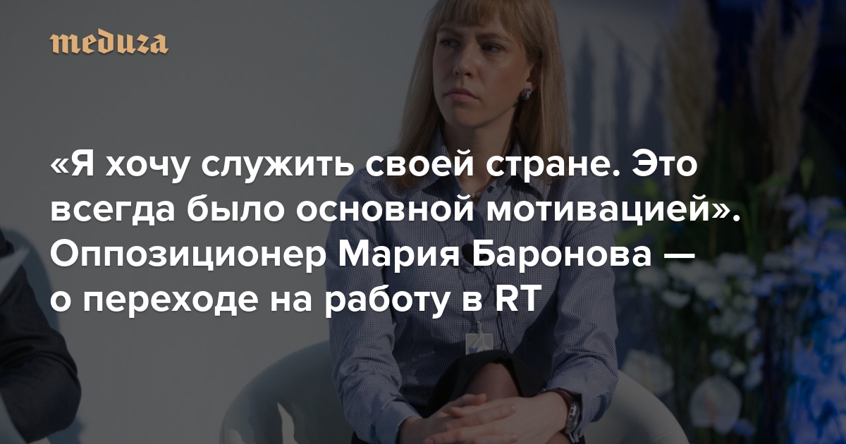 «Я хочу служить своей стране. Это всегда было основной мотивацией» Бывшая сотрудница «Открытой России» Мария Баронова — о переходе на работу в RT