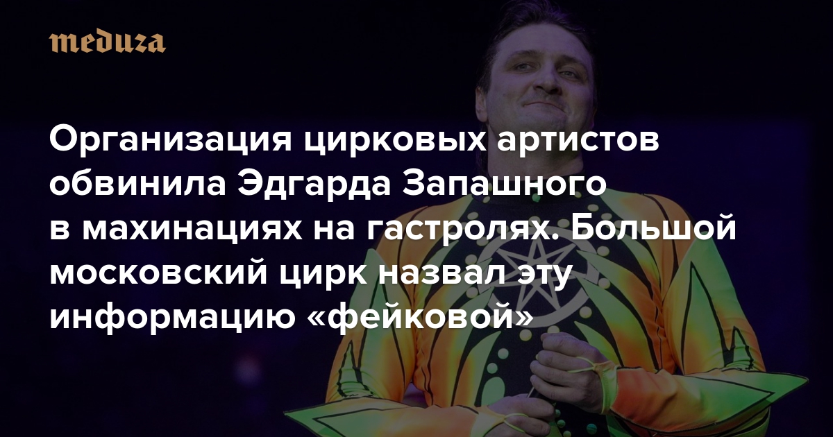 Телеканал «Дождь» сообщил, что межрегиональная общественная организация «Творческое объединение цирковых коллективов» подготовила жалобу в СК на гендиректора Большого московского цирка Эдгарда Запашного.