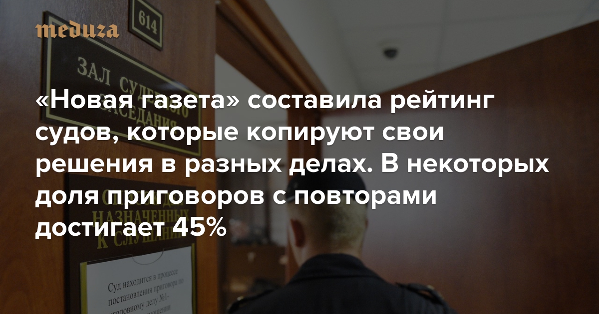 «Новая газета» составила рейтинг судов, которые копируют свои решения в разных делах. В некоторых доля приговоров с повторами достигает 45%