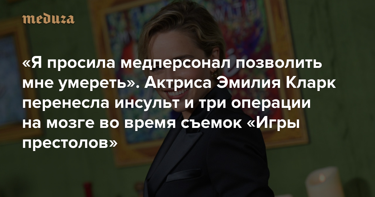 «Я просила медперсонал позволить мне умереть» Актриса Эмилия Кларк рассказала, что перенесла инсульт и три операции на мозге во время съемок «Игры престолов»