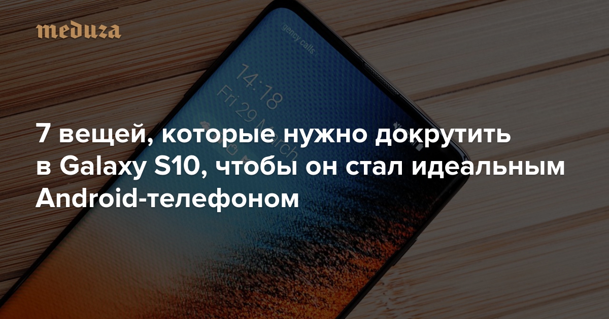Samsung Galaxy S10, представленный 20 февраля 2019 года, по умолчанию стал одним из главных телефонов 2019 года — наряду с грядущими моделями айфонов и Pixel. Пусть он не такой необычный, как Galaxy Fold со складным экраном, зато в нем все работает так, как ожидаешь. Ну, почти все: журналист «Медузы» Султан Сулейманов провел с Galaxy S10 несколько недель и рассказывает, какие детали нужно докрутить Samsung, чтобы этот аппарат можно было назвать идеальным Android-телефоном 2019 года.