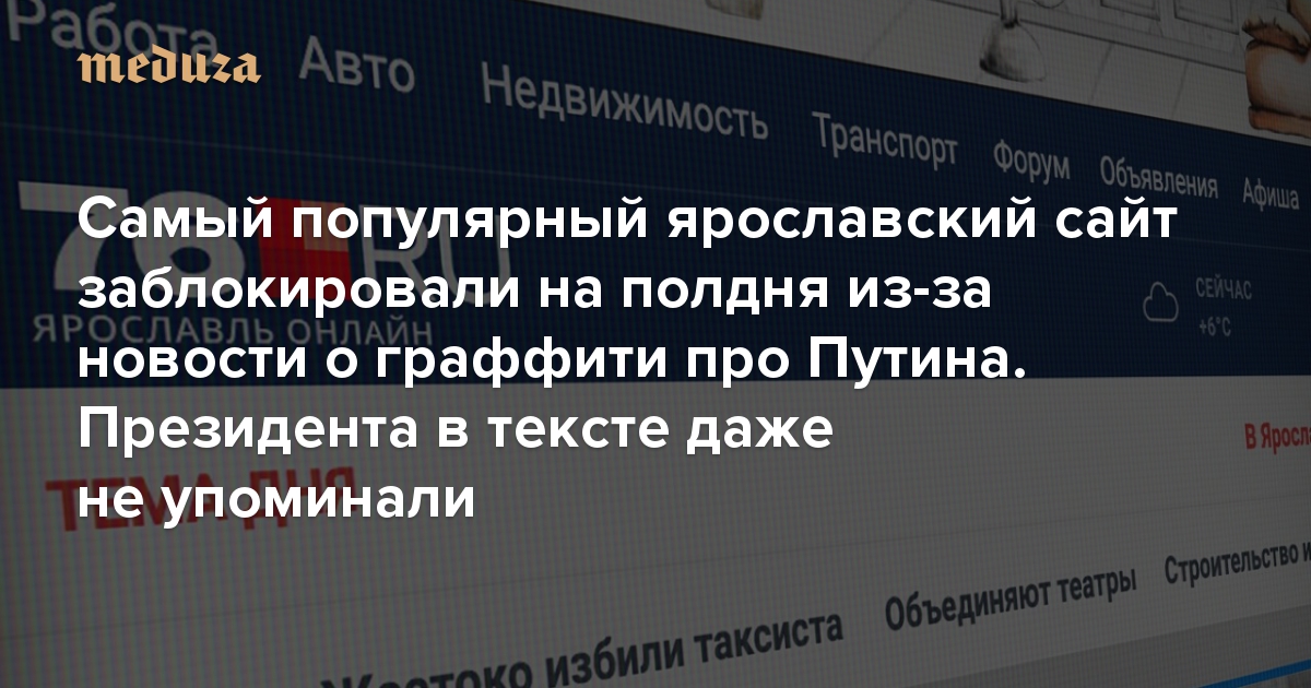 Самый популярный ярославский сайт заблокировали на полдня из-за новости о граффити про Путина. Президента в тексте даже не упоминали