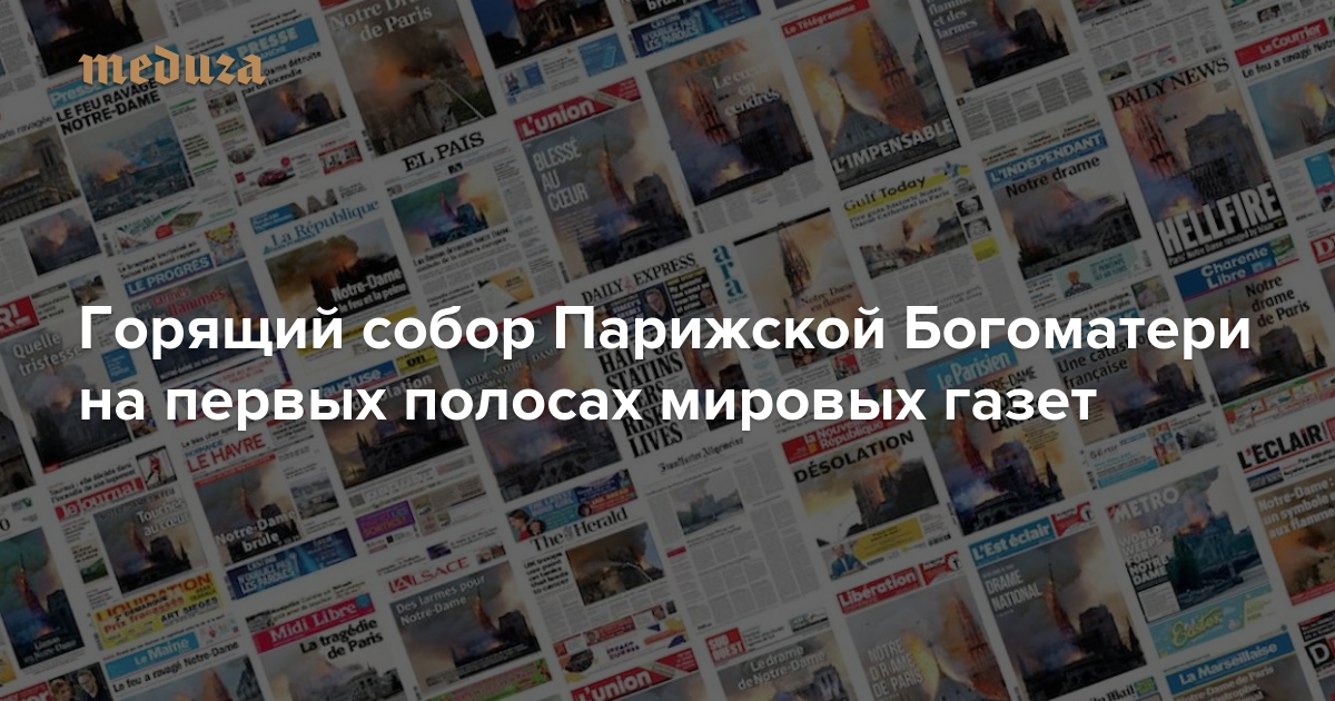 Горящий собор Парижской Богоматери на первых полосах мировых газет