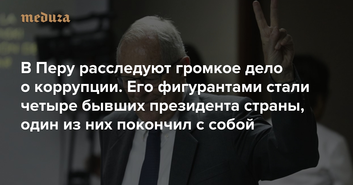 В Перу, согласно показаниям руководства Odebrecht, компания заплатила взяток на 29 миллионов долларов. В получении денег от строительного гиганта заподозрили сразу четырех бывших президентов страны. Кроме Пабло Кучински, это Алехандро Толедо (возглавлял Перу в 2001-2006 годах), Ольянта Умала (был президентом в 2011-2016 годах) и Алан Гарсия, который занимал президентский пост дважды — с 1985 по 1990 год и с 2006 по 2011 год. 17 апреля Гарсия покончил с собой, когда полиция пришла взять его под арест по делу Odebrecht. На его похоронах дочь Гарсии зачитала его предсмертную записку, в которой бывший президент заявил о своей невиновности. «Не было никаких счетов, никаких взяток, никакого богатства. <…> Другие продаются — я нет», — написал Гарсия.