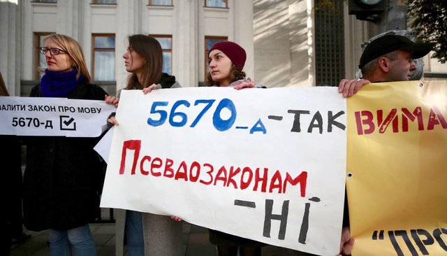 В то же время социологические данные показывают, что до 80% жителей Украины поддерживают расширение сферы применения украинского языка. Правительство Украины также обещает в ближайшее время вынести на рассмотрение закон о защите языков национальных меньшинств, который дополнит и сбалансирует языковую политику. Введение административных наказаний, предусмотренных новым законом, отложено на три года. Авторы закона с самого начала подчеркивали, что он никак не повлияет на использование языка в частной жизни.