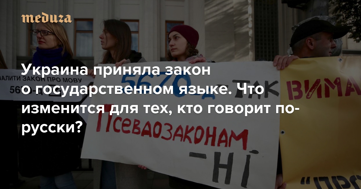 Верховная рада Украины одобрила во втором и третьем чтениях закон № 5670-д «Об обеспечении функционирования украинского языка как государственного». Его поддержали 278 депутатов парламента (из 450). Новый закон лишает русский и другие «языки национальных меньшинств» статуса региональных и резко сокращает сферу их применения в общественной жизни. Окончательного текста до сих пор нет на сайте парламента, но основные положения были известны заранее. Вот что надо знать об этом законе.