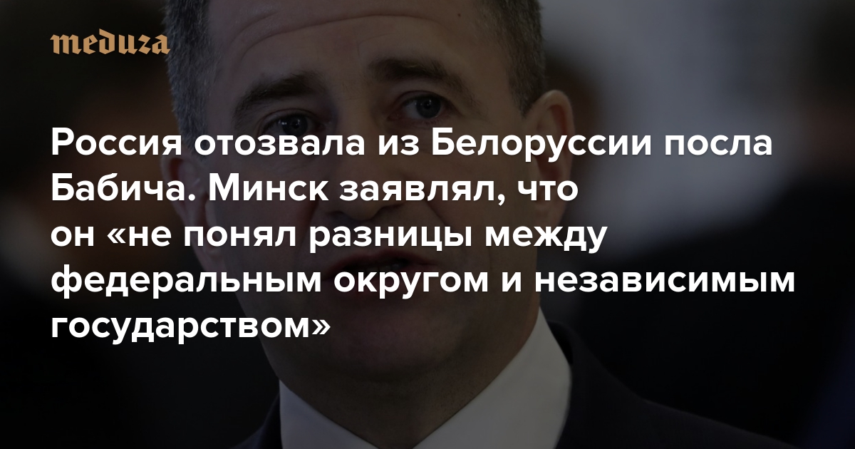 Россия отозвала из Белоруссии посла Бабича. Минск заявлял, что он «не понял разницы между федеральным округом и независимым государством»