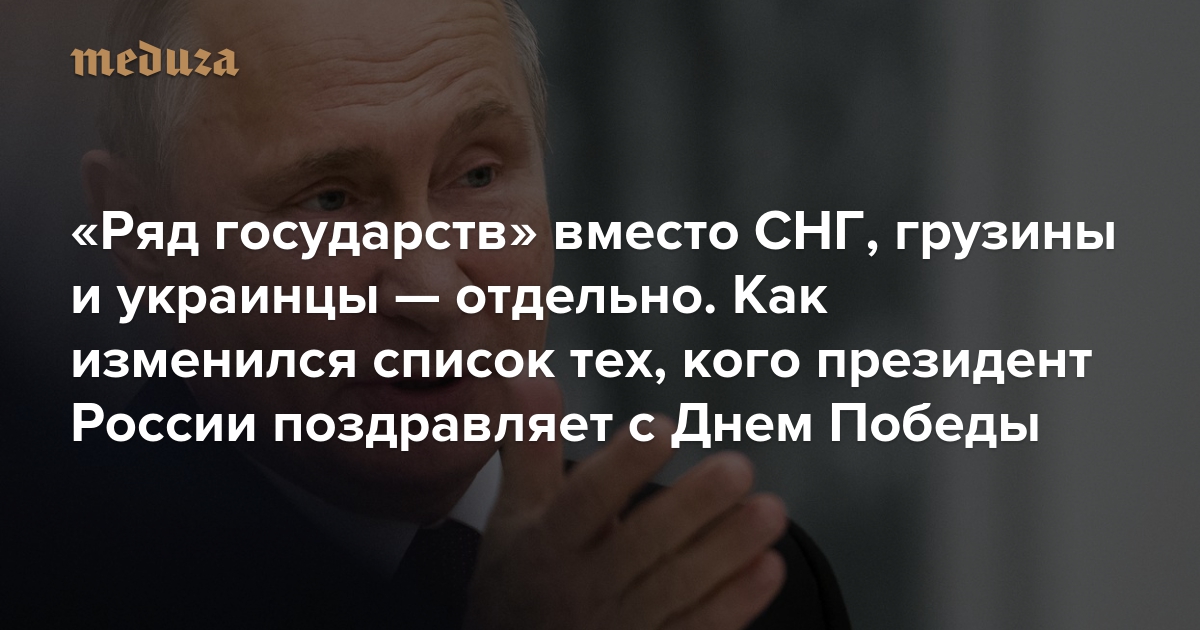 «Ряд государств» вместо СНГ, грузины и украинцы — отдельно. Как изменился список тех, кого президент России поздравляет с Днем Победы