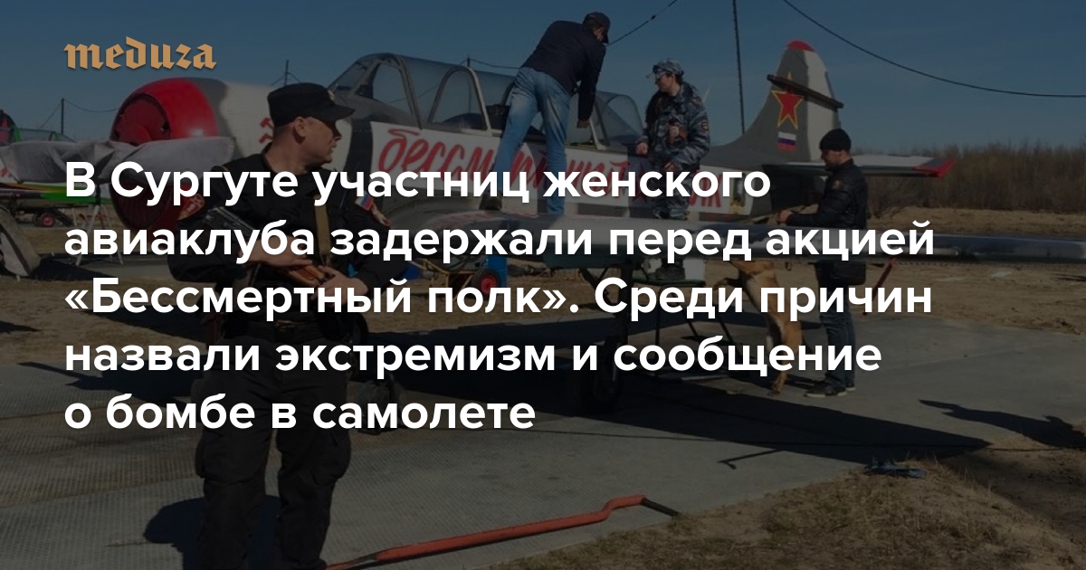 В Сургуте участниц женского авиаклуба задержали перед акцией «Бессмертный полк». Среди причин назвали экстремизм и сообщение о бомбе в самолете